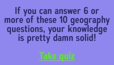 7/10 is what people on average are scoring in this Geography quiz so far. Are you ready to answer questions like "Which Greek city held the ancient Olympics? " and "The Dead Sea has a large amount of what in it?"