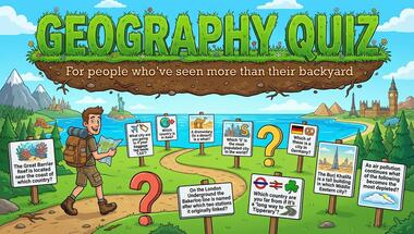 7/10 is what people on average are scoring in this Geography quiz so far. Are you ready to answer questions like "The Great Barrier Reef is located near the coast of which country?" and "Which of these is a city in Germany?"