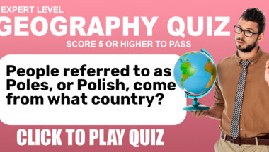 5/10 is what people on average are scoring in this Geography quiz so far. Are you ready to answer questions like "People referred to as Poles, or Polish, come from what country?" and "In what U.S. state are the cities of Boston and Cambridge located?"