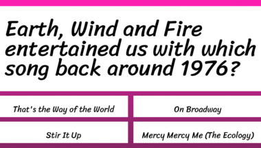 If you can answer "Gladys Knight and The Pips entertained us with which song back around 1974?" and maybe even "Tom Jones entertained us with which song back around 1970?" there is a good chance that you're going to beat the average score of 4/10 in this trivia quiz