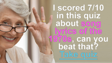 7/10 is the score to beat in this trivia quiz to put yourself over the average quiz taker. But you're probably going to be able to answer questions "What comes right after "I hear you knocking" in the Dave Edmunds song?" and "The New Seekers were going to beg, steal or what in 1972?" easy!