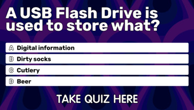 Look forward to questions like "What is the last letter of the English alphabet?" and "A USB Flash Drive is used to store what?"