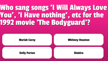 4/10 is the score to beat in this trivia quiz to put yourself over the average quiz taker. But you're probably going to be able to answer questions "And if you love him oh be proud of him' is from which song?" and "Who sang songs 'I Will Always Love You', 'I Have nothing', etc for the 1992 movie 'Th.." easy!