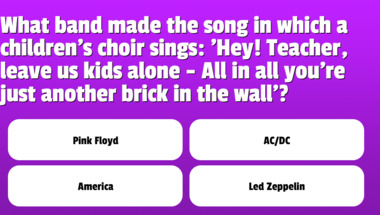 4/10 is the score to beat in this trivia quiz to put yourself over the average quiz taker. But you're probably going to be able to answer questions "What colour did Elvis dye his hair?" and "What band made the song in which a children's choir sings: 'Hey! Teacher, leave us ki.." easy!