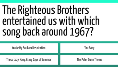 4/10 is the score to beat in this trivia quiz to put yourself over the average quiz taker. But you're probably going to be able to answer questions "Which Troggs song has the line 'You make everything groovy'?" and "Which film was the 1986 smash hit 'Take My Breath Away' used for?" easy!