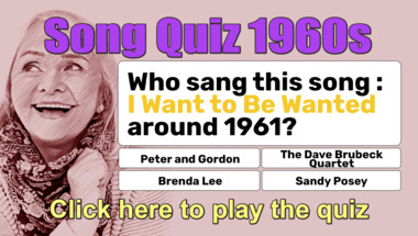 If you can answer "Who sang this song : "Let's Twist Again" back in the 1960s?" and maybe even "Who sang this song : "I'm Henry the VIII, I Am" back in the 1960s?" there is a good chance that you're going to beat the average score of 4/10 in this 1960s songs quiz