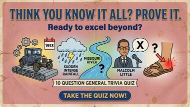 In this fun General knowledge quiz we're going to ask questions like "A sudden, intense rainfall that is normally of short duration is called a what? " and "A man named Malcolm Little found fame in the U.S.A. under what name?".