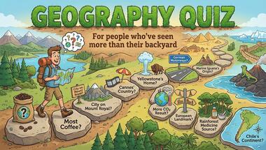 7/10 is what people on average are scoring in this Geography quiz so far. Are you ready to answer questions like "Yellowstone Park is located in which country?" and "Motorways in Germany are called what?"