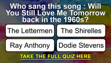 In this fun trivia quiz we're going to ask questions like "Who sang this song : "Will You Still Love Me Tomorrow" back in the 1960s?" and "Who sang this song : " Roses Are Red (My Love)" back in the 1960s?".