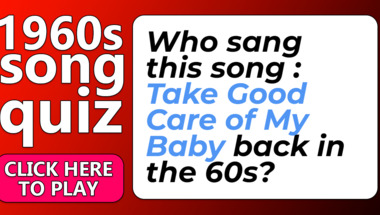 5/10 is the score to beat in this 1960s Songs quiz to put yourself over the average quiz taker. But you're probably going to be able to answer questions "Who sang this song : "Take Good Care of My Baby" back in the 60s?" and "Who sang this song : "A Teenager In Love" back in the 60s?" easy!