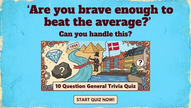 7/10 is the score to beat in this General knowledge quiz to put yourself over the average quiz taker. But you're probably going to be able to answer questions "In which country would you find the Taj Mahal" and "Whose favourite drink was a Martini, shaken not stirred?" easy!