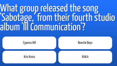 In this fun trivia quiz we're going to ask questions like "What group released the song 'Sabotage,' from their fourth studio album 'Ill Communic.." and "In 1997, which artist released the UK number 1 album 'Blur'?".
