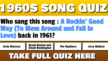 4/10 is the score to beat in this 1960s Songs quiz to put yourself over the average quiz taker. But you're probably going to be able to answer questions "Who sang this song : "Hey Paula" back in the 60s?" and "Who sang this song : "Alvin's Harmonica" back in the 60s?" easy!