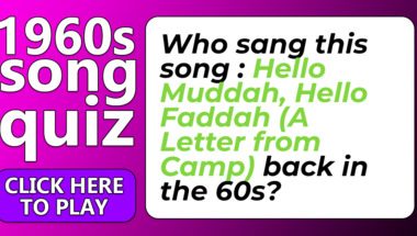 4/10 is what people on average are scoring in this 1960s Songs quiz so far. Are you ready to answer questions like "Who sang this song : "Sherry" back in the 60s?" and "Who sang this song : "Hello Muddah, Hello Faddah (A Letter from Camp)" back in the 60.."